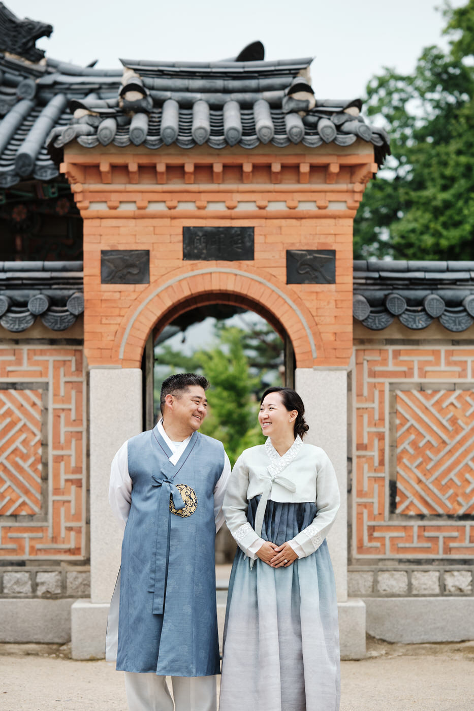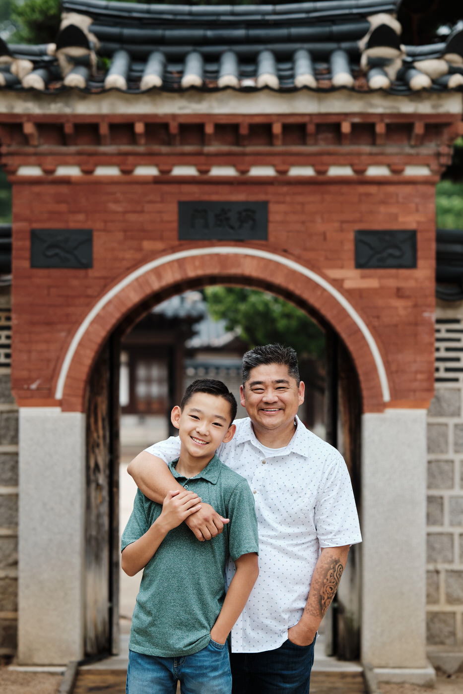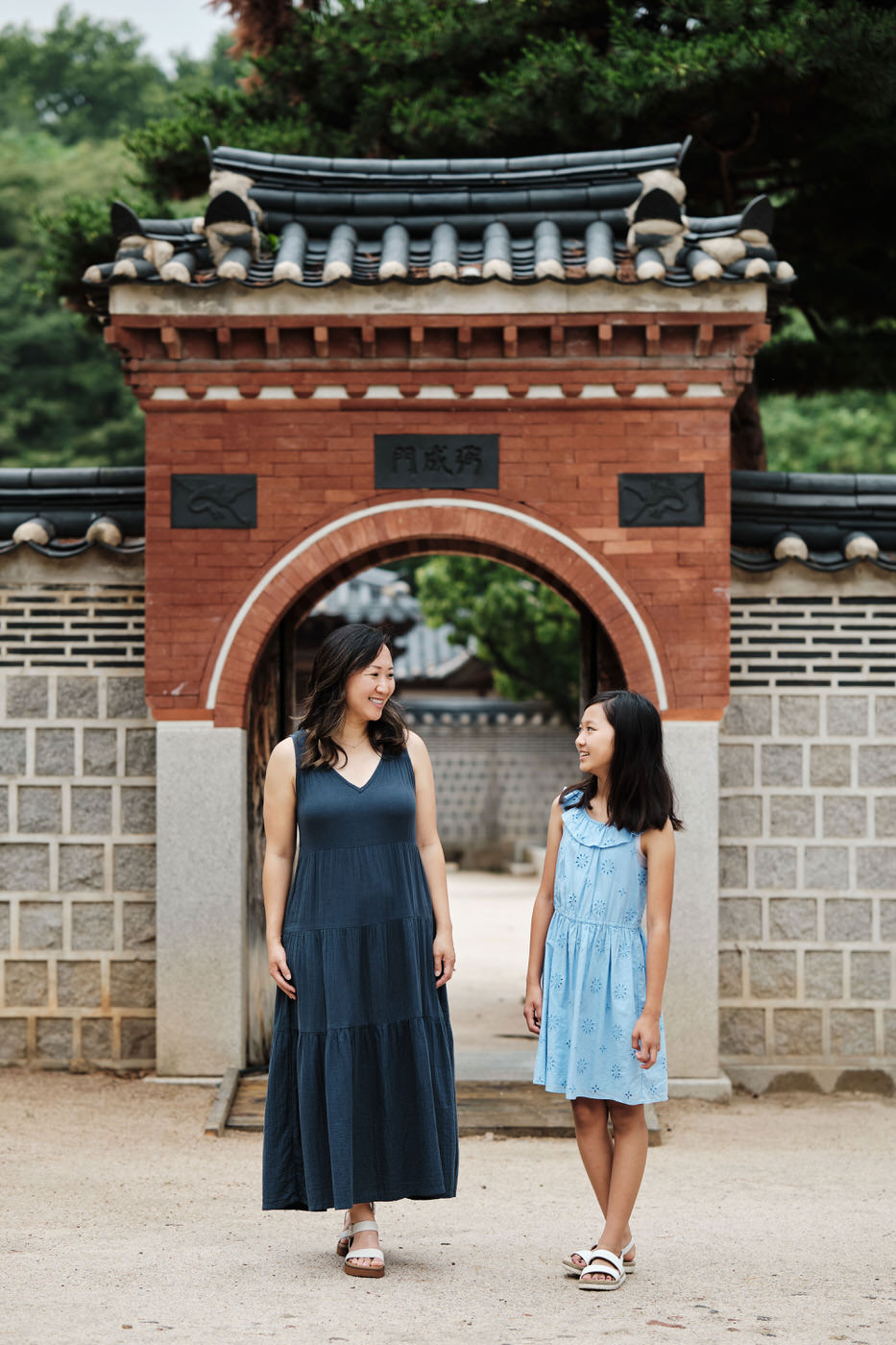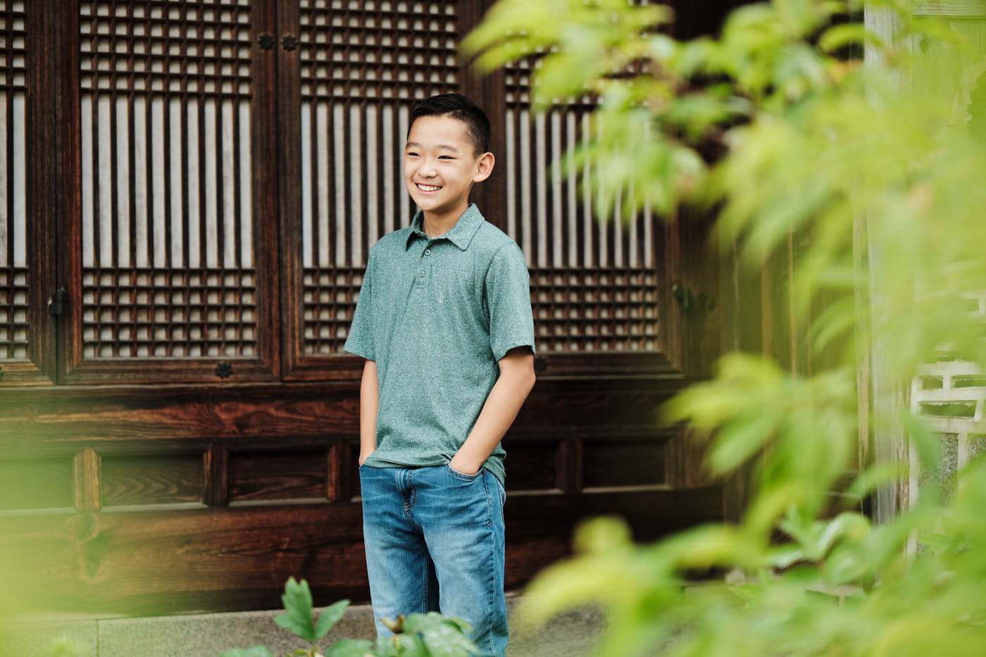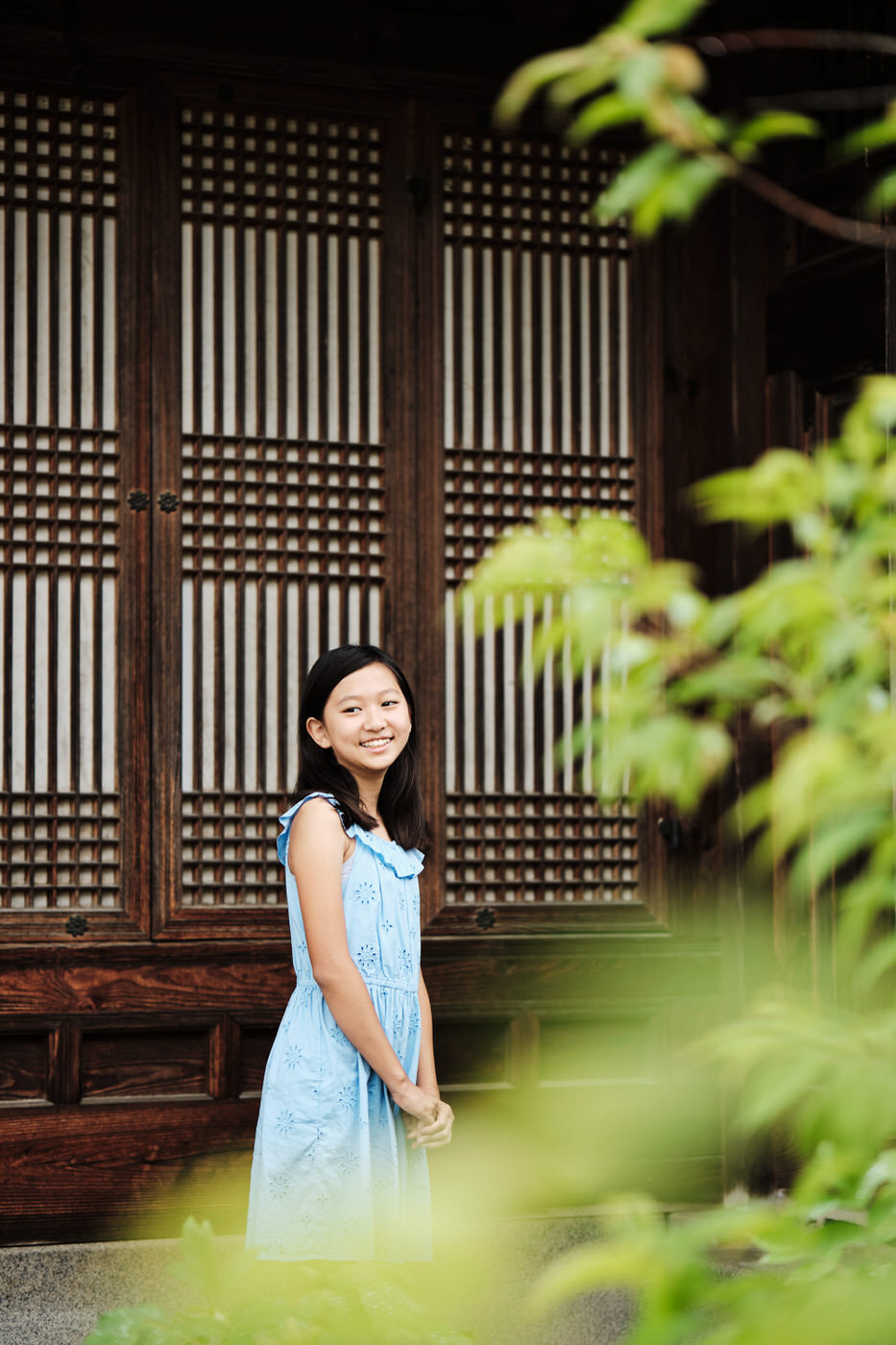 By this time, the hanboks were getting a little stuffy, so we took a brief moment to change out of them and cool down before resuming our session in regular clothes. As the family had taken a similar subdued approach to their everyday clothes, this section of the shoot blended seamlessly into the hanbok section. Seoul’s palaces are gorgeous and colourful, so it pays to keep your clothing subdued if that’s your family’s style. It allows your faces to stand out against the clothing and the architecture to take the role of providing colour.