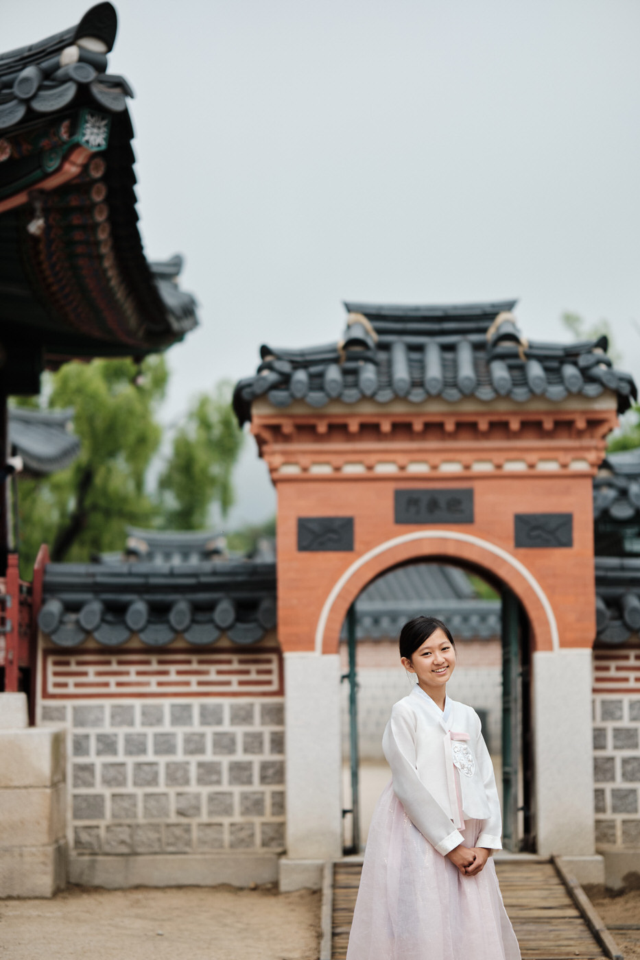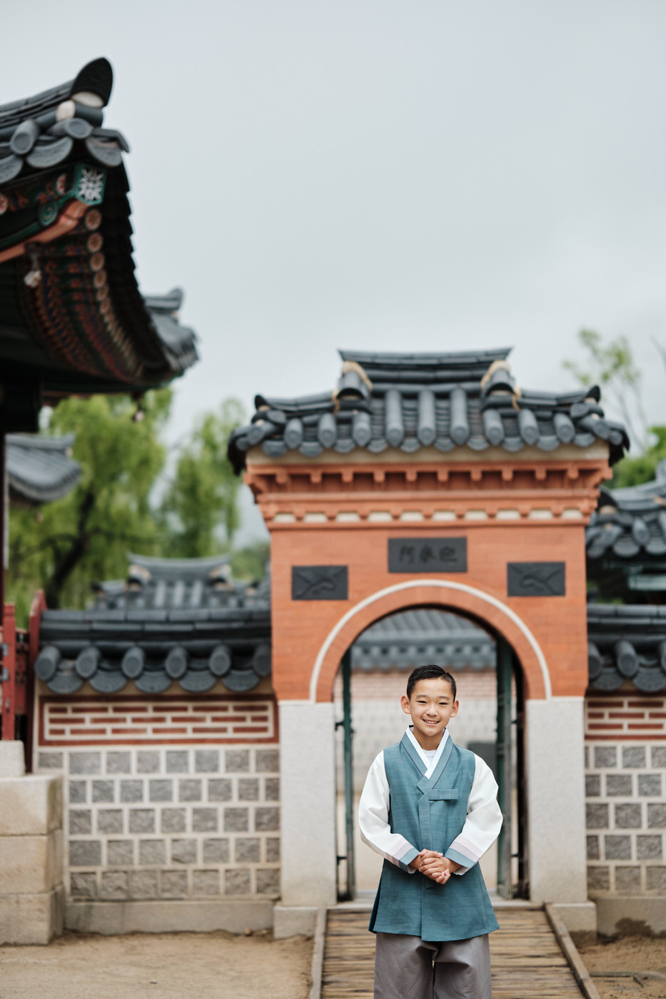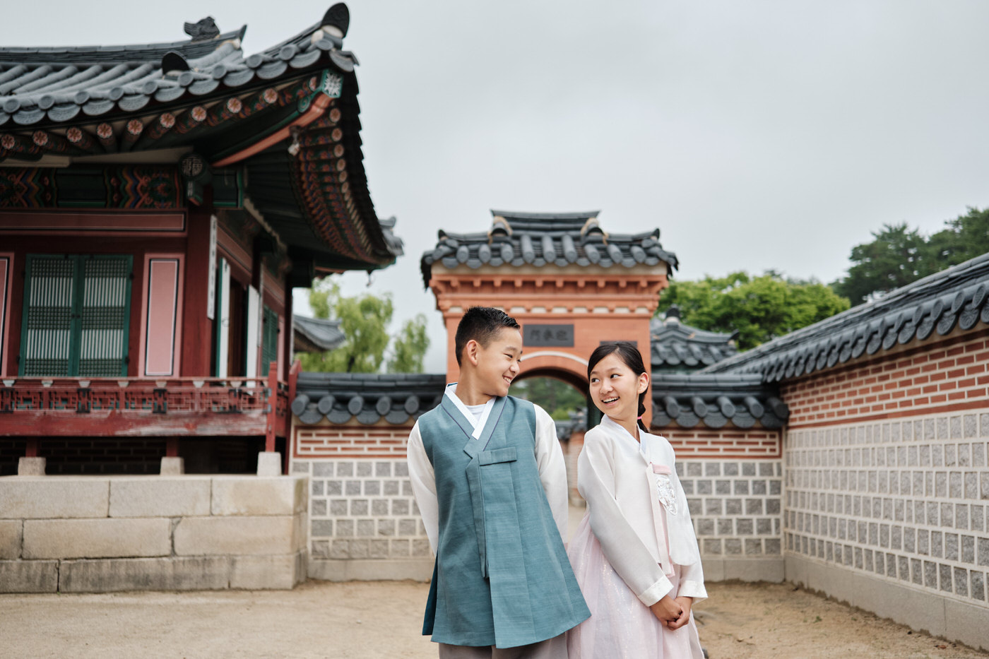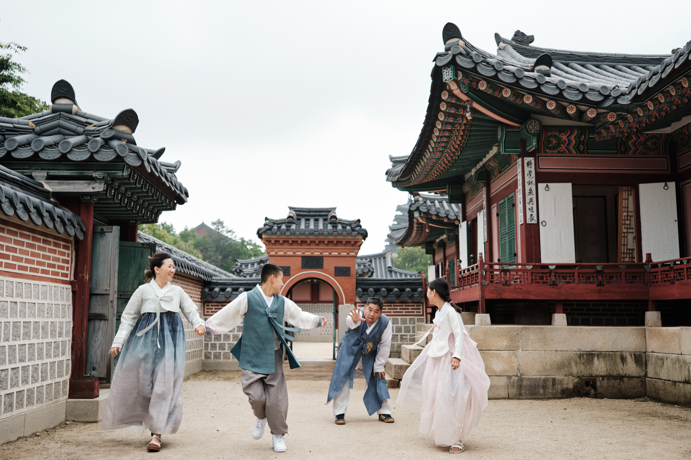 For the first section, the family chose to wear simpler, more subdued, more traditional feeling hanboks than many of the shops around have on their doorsteps. While still modern in style, their choices kept a traditional aesthetic which worked incredibly well in the palace grounds.